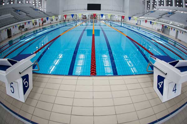 3、池壁和池底應按規格設置標志線,標志線的位置和尺寸參照《體育建筑設計規范》表1的要求設置,兩端池壁應設置浮標掛鉤。