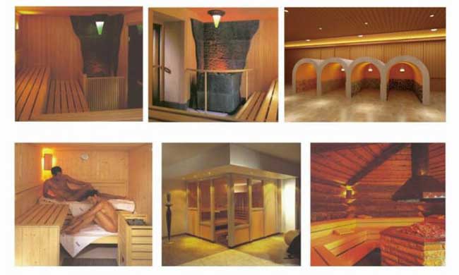 桑拿房也叫汗蒸房,發源于芬蘭,它包括干蒸房和濕蒸房,但是人們平常說的桑拿房是干蒸房,蒸汽房是濕蒸房。